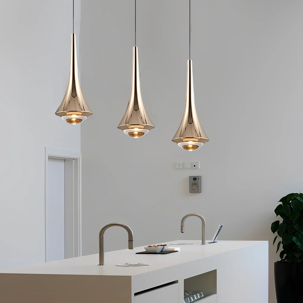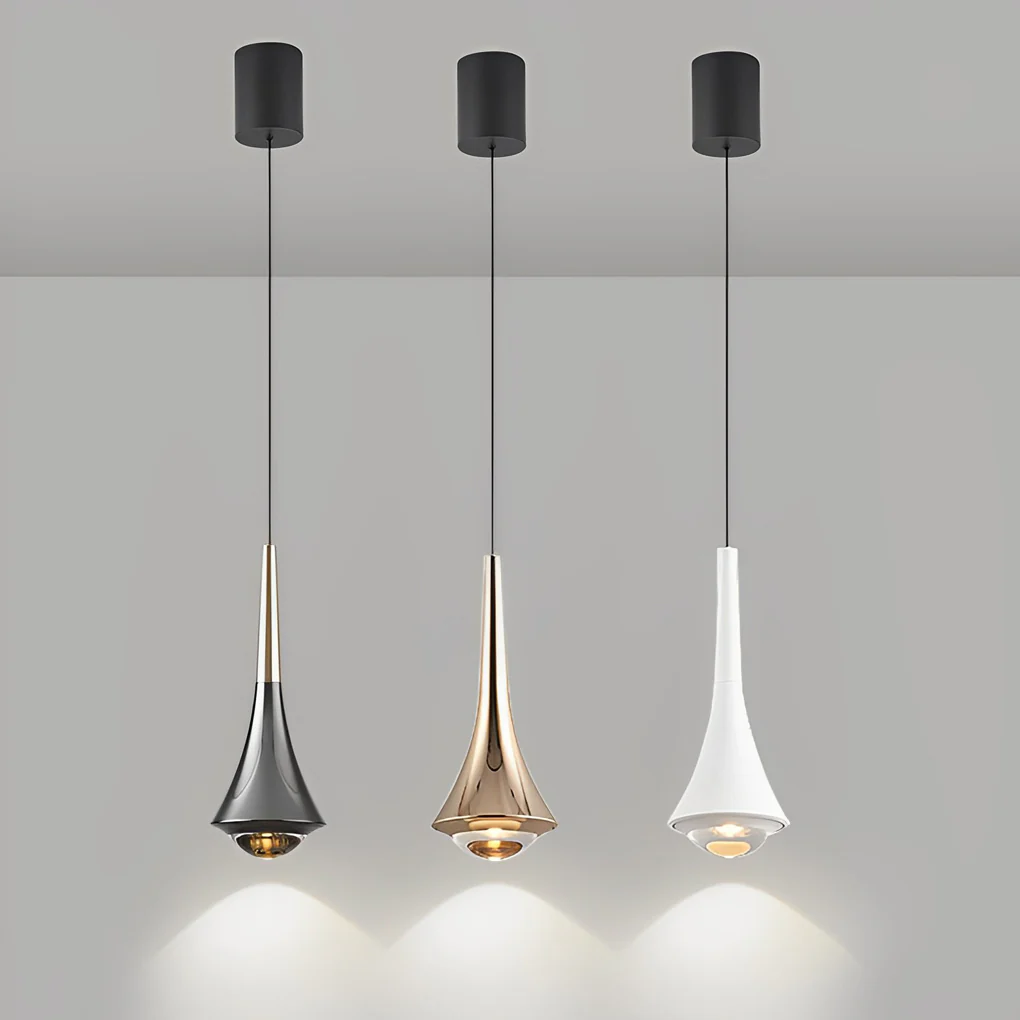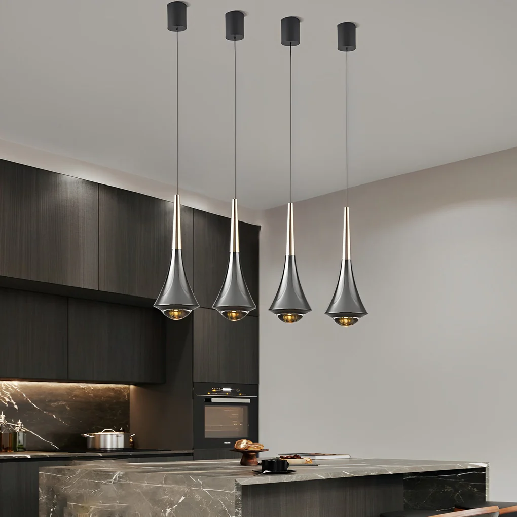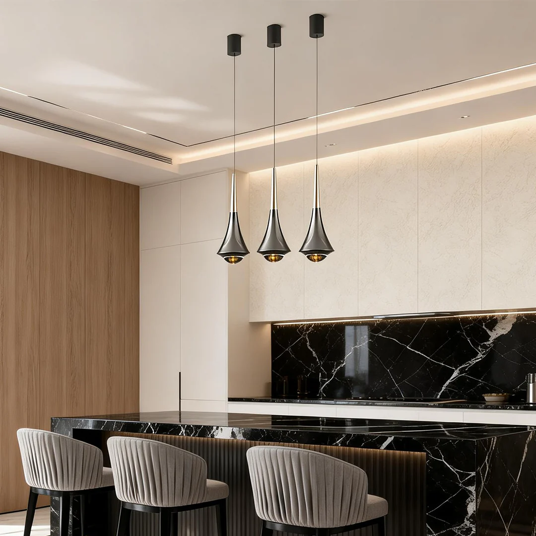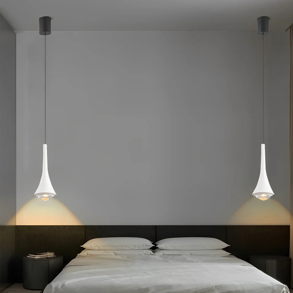 This black cone pendant lights features an aluminum body paired with a glass lampshade, equipped with a 7W 3000K warm white LED light source. With its creative, adjustable-height design, it creates modern decorative lighting that combines flexible functionality with a cozy atmosphere for spaces such as dining rooms, bedrooms, and cafes.